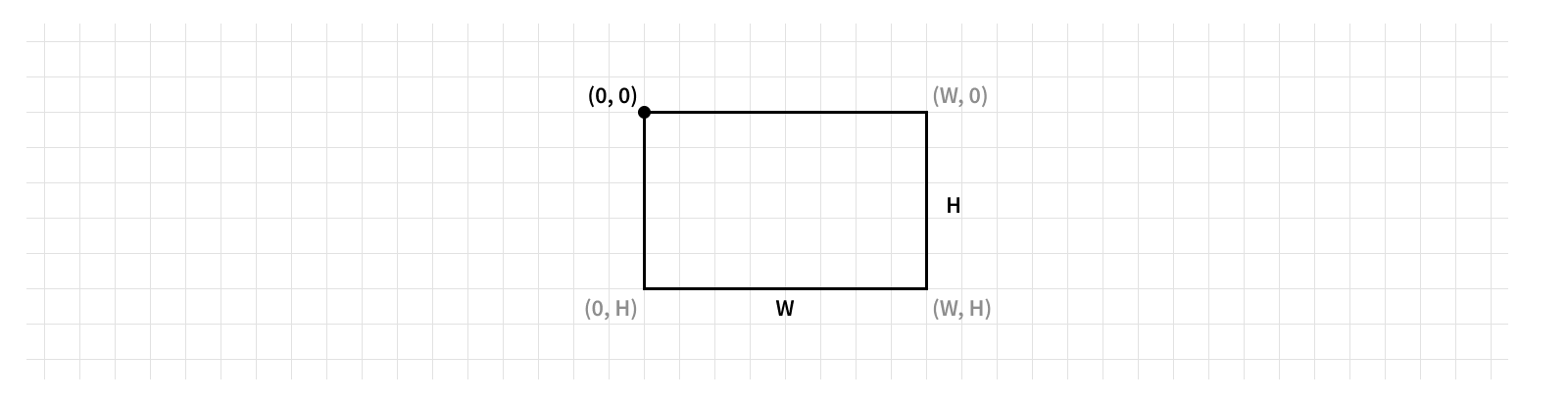 We’ll start with the first word: it’s a rectangle. Specifically, the bounds property is represented by a CGRect, which is made up of a point (the origin) and a size (the size). The size of a rect refers to… you guessed it, its size, made up of a width and height. The origin refers to the x and y coordinates of the rect’s top left corner.