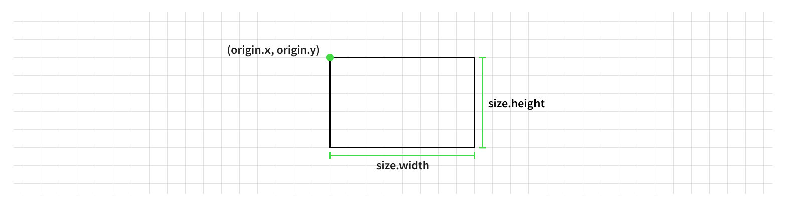 CGRectrepresents a rectangle in two-dimensional space, as defined by itsorigin(top left corner) andsize.