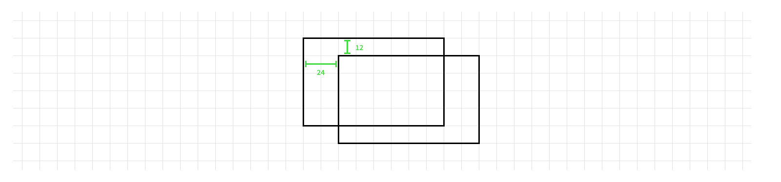 This example is only the start of the power of alignment though. We often don’t want to align two points exactly, but rather have some space between them. For example, say we want to align the top left corner of a view with the top left corner of its superview, inset 12 points from the top edge and 24 points from the left edge.